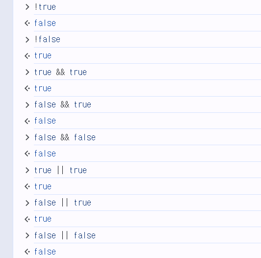 → 논리 부정 연산자는 ! 기호를 사용하며 참을 거짓으로, 거짓을 참으로 바꾼다.