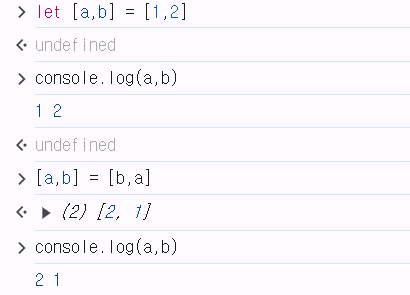 → 다중 할당 : [ 식별자, 식별자, 식별자, ... ] = 배열